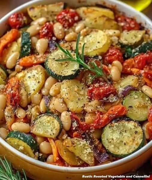 🥘 Rustic Roasted Vegetable & Cannellini Bean Bake (Mediterranean Style)