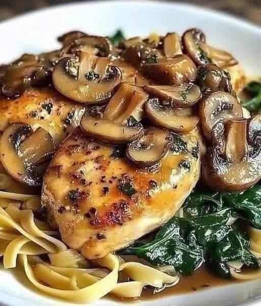 🍗🍄 Savory Garlic Mushroom Chicken with Spinach