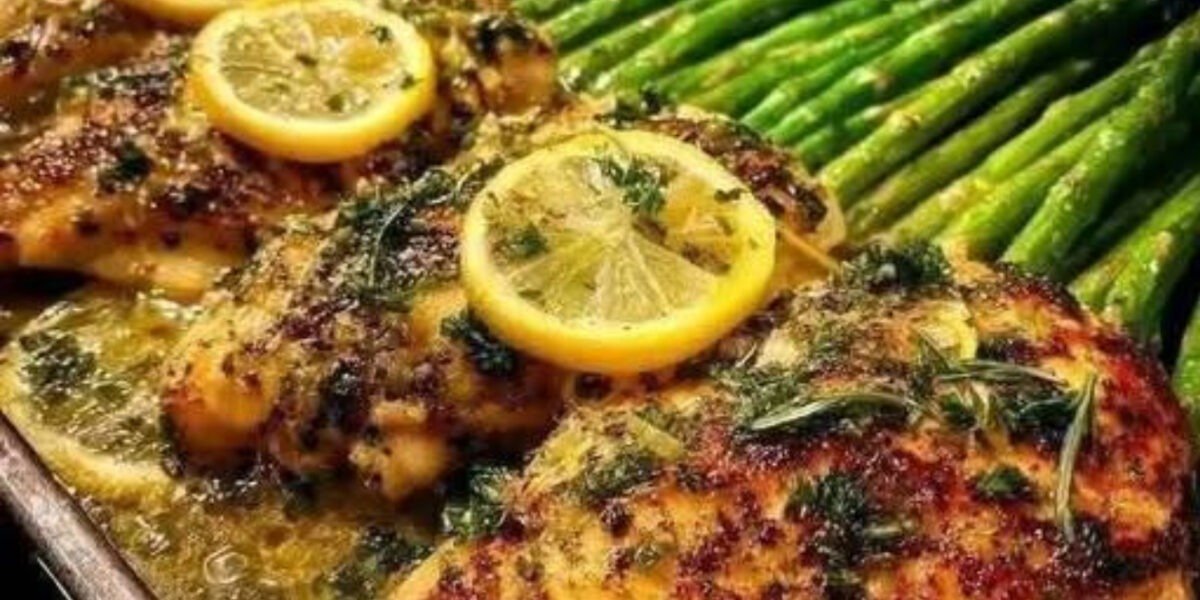 A vibrant, anti-inflammatory sheet pan dinner made with juicy lemon herb chicken and roasted asparagus. This easy one-pan meal is packed with fresh herbs, heart-healthy olive oil, and vitamin-rich vegetables — perfect for a clean eating meal plan, Mediterranean diet lifestyle, or healthy weight management routine.