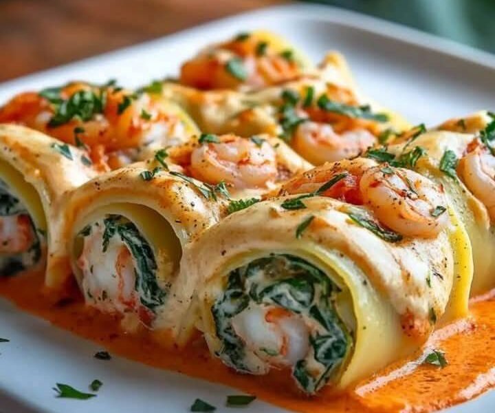 🍝 Shrimp and Spinach Stuffed Pasta Rolls