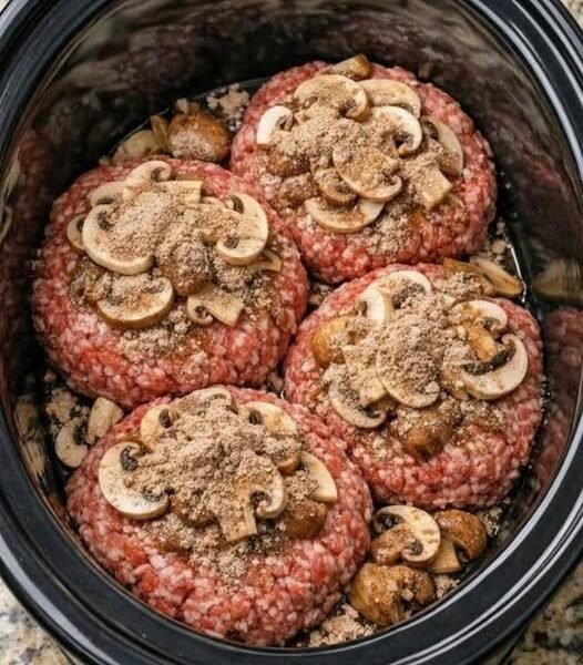 Juicy beef patties are layered with mushrooms and a simple gravy mixture, then slow-cooked until rich and savory. The mushrooms soak up the flavor while adding natural umami and extra nutrients.