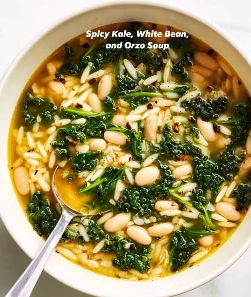 🍲 Spicy Kale, White Bean & Orzo Soup (Mediterranean Style)