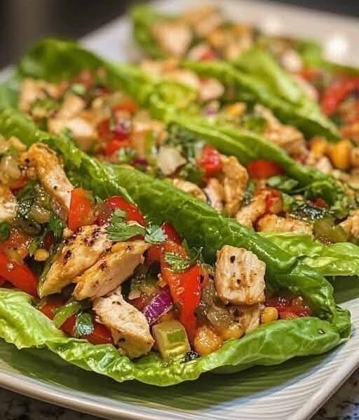 These Spicy Thai Peanut Chicken Lettuce Wraps are fresh, flavorful, and perfectly satisfying. Juicy ground chicken is cooked with garlic, ginger, and colorful vegetables, then tossed in a creamy-spicy peanut sauce and wrapped in crisp lettuce leaves.