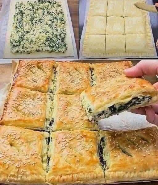 🥐 Spinach & Cheese Puff Pastry Squares (Mediterranean)