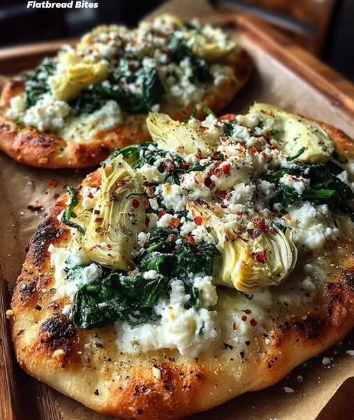 🌿 Spinach, Artichoke & Feta Flatbread Bites (Mediterranean Style)