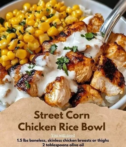 Add warm rice to bowls. Top with chicken, creamy street corn, and fresh toppings. Finish with extra herbs and a squeeze of lemon.
