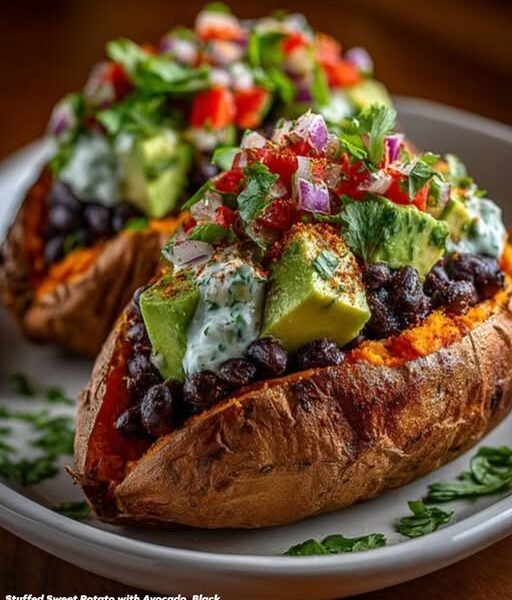 🥑 Stuffed Sweet Potato with Avocado, Black Beans & Cilantro Lime Crema (Mediterranean-Style)