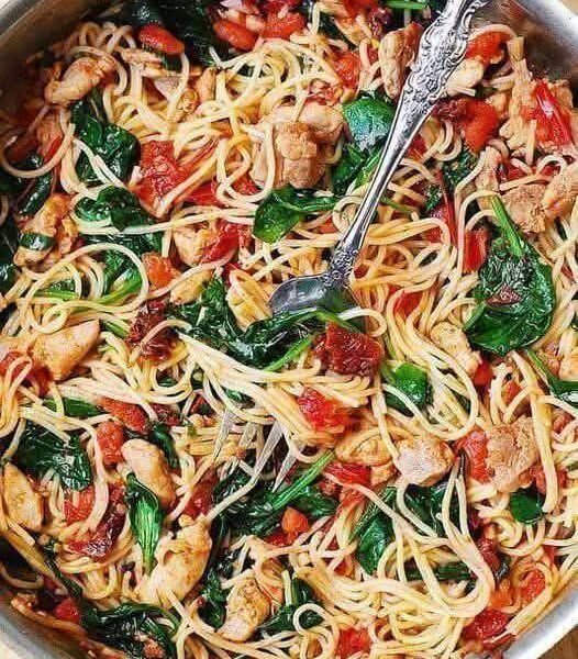 Tomato Spinach Chicken Spaghetti