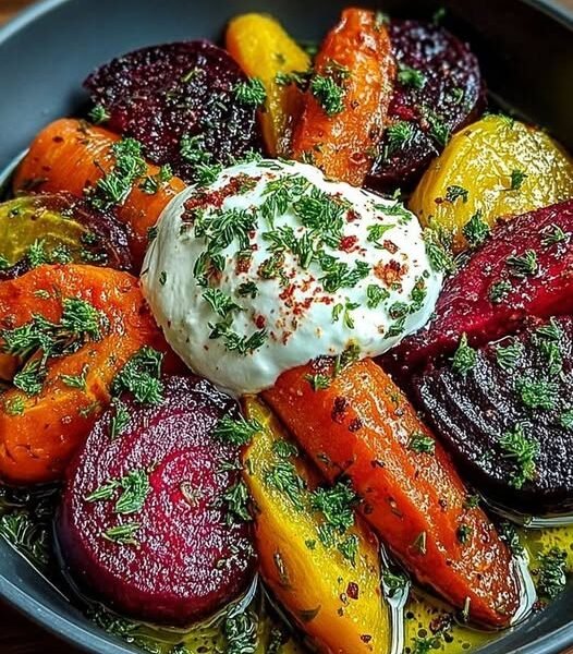 🥗 Vibrant Roasted Beets & Carrots with Creamy Burrata Salad